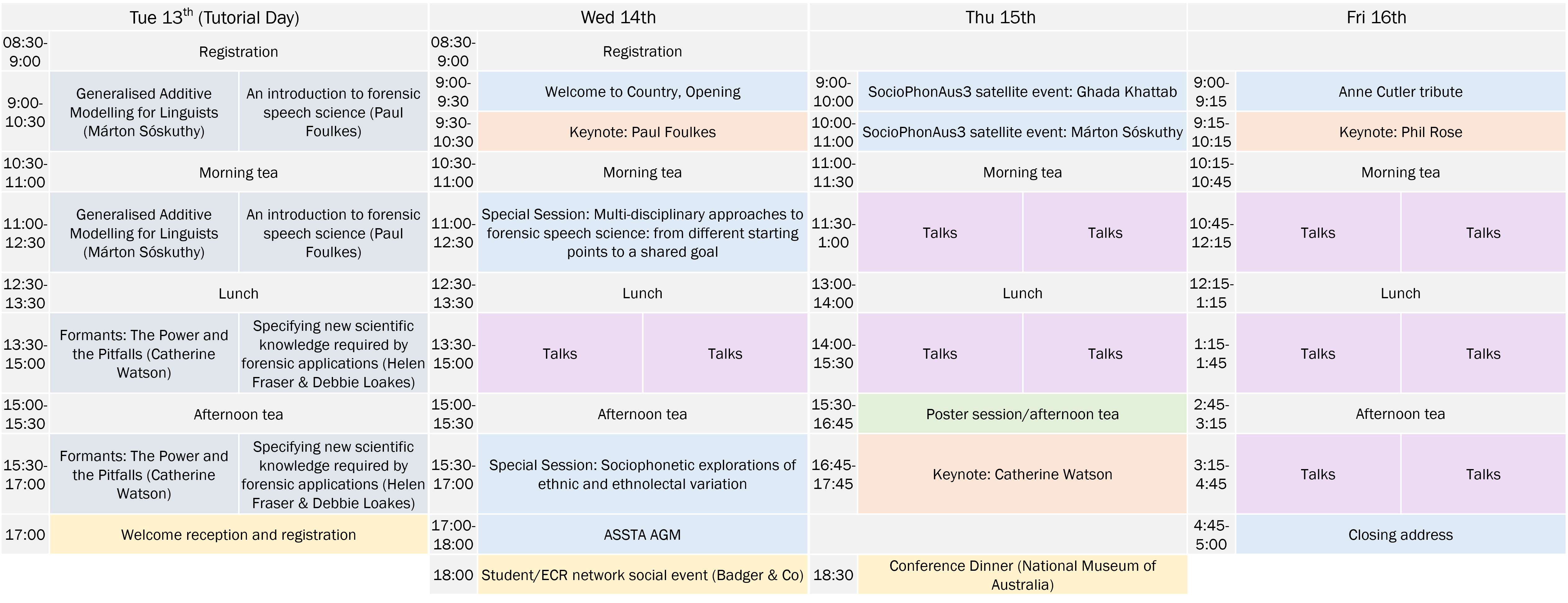 All times are in Australian Eastern Daylight Time (AEDT). Please check a timezone converter if you will be joining remotely from another timezone.
